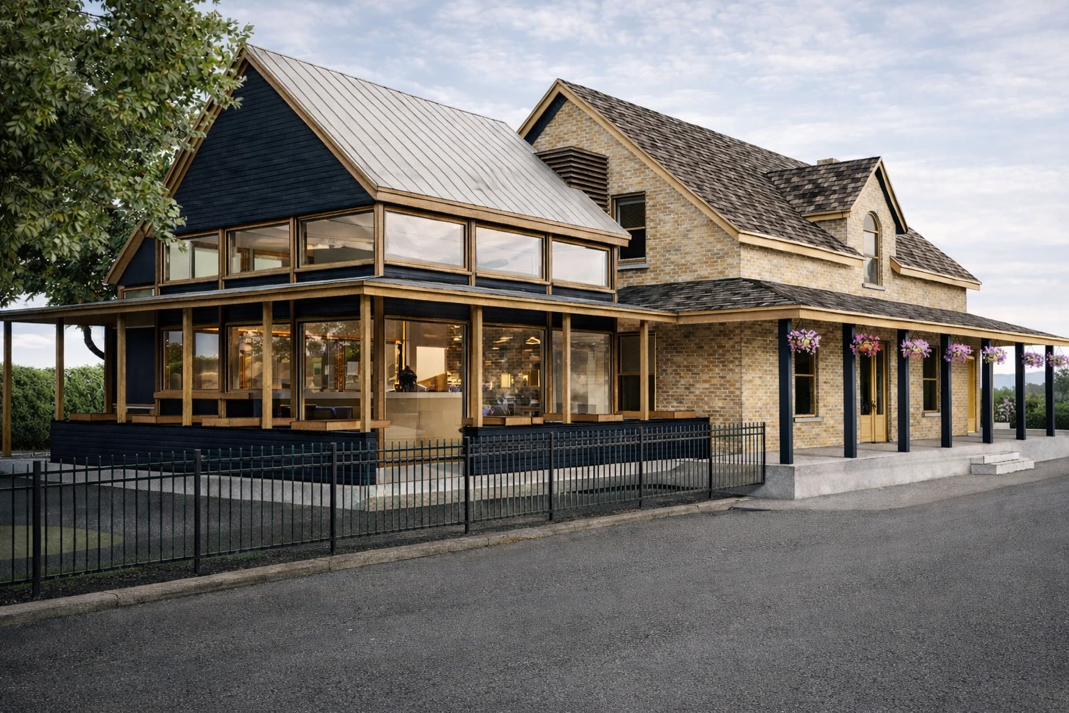 Réalisé en collaboration avec l’Atelier Jean Damecour, ce projet comprend la rénovation et l’agrandissement d’un bâtiment datant de 1875, mené en plusieurs phases successives. Le mandat visait à moderniser l’établissement tout en préservant son caractère authentique et convivial. Les éléments patrimoniaux ont été conservés, puis intégrés à des espaces repensés : salle principale, bar, terrasse et zones de service. L’ensemble améliore la fluidité des opérations et l’expérience client, tout en respectant l’identité du lieu.