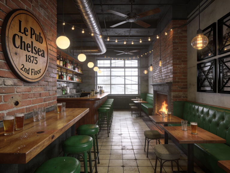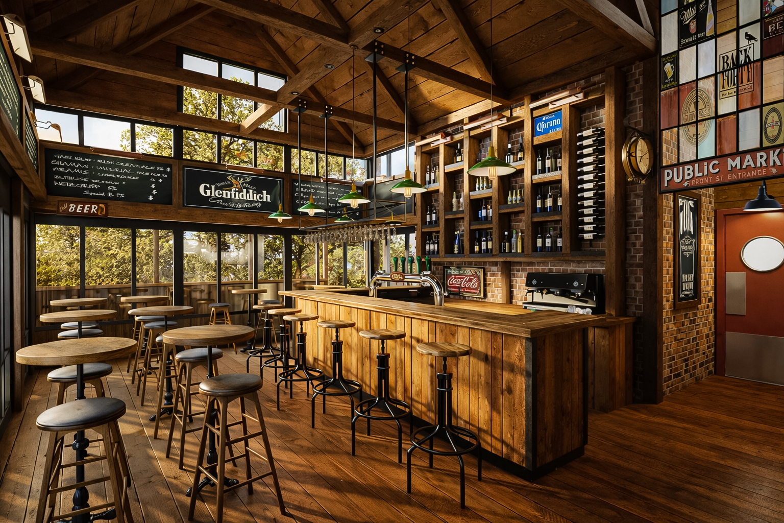 Le mandat visait à moderniser l’établissement tout en préservant son caractère authentique et convivial. Les éléments patrimoniaux ont été conservés, puis intégrés à des espaces repensés : salle principale, bar, terrasse et zones de service.