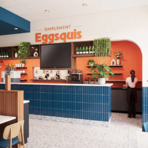 Eggsquis souhaitait un espace plus lumineux, chaleureux et efficace. Le restaurant avait besoin d’une meilleure circulation et d’une ambiance plus actuelle. Le mandat consistait donc à revoir entièrement l’aménagement: accueil, salle à manger, banquettes, éclairage et zones de service, tout en restant fidèle à l’esprit convivial de la marque.