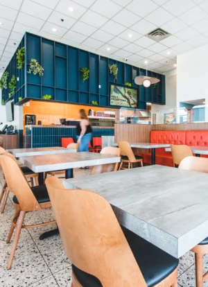 Restaurant EGGSQUIS Création collaborative: EXA Design Rénovation: Succursale Greenfield Park Année: 2024 Crédit photos: Myriam Lafreniere #Projets commerciaux < Restaurant – HEMINGWAY Kanapé Café >