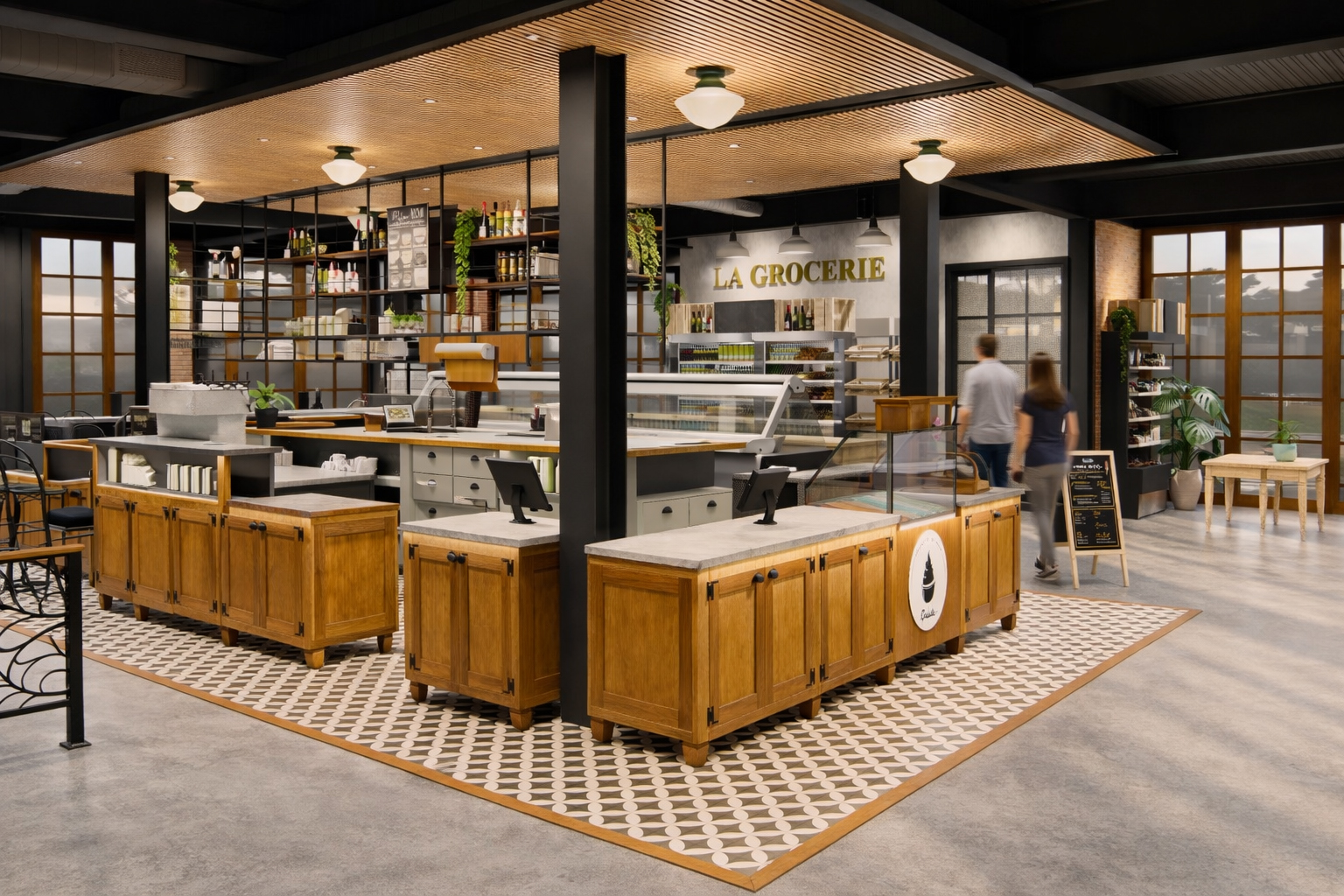 La Grocerie du Square fait partie du développement du Square Old Chelsea, un ensemble de commerces pensé comme un lieu cohérent et complémentaire. L’aménagement crée un marché intérieur chaleureux, clair et accessible. L’espace est organisé autour de zones distinctes qui facilitent les déplacements et mettent les produits en valeur.